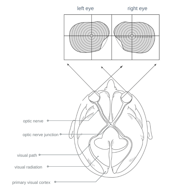 Through the interaction of the optical elements of the eyes – cornea, lens and eye fluid – a sharp image is imaged on the retina and converted into energy. It then travels along thin nerve fibers to the optic nerve in the brain, where the nerve tracts branch out.